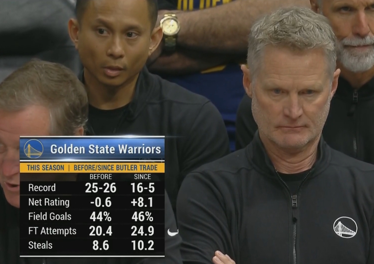2025-03-29 21:41:28巴特勒交易后勇士全面提升 战绩16-5 命中率罚球抢断均提升