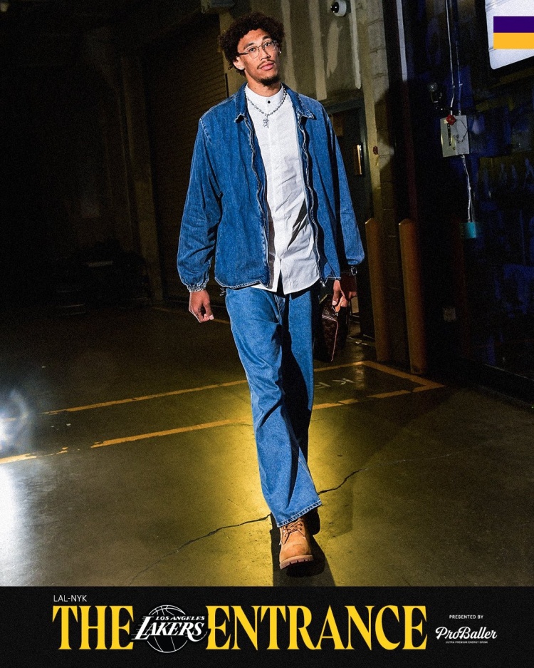 2025-03-07 15:27:19湖人众将入场穿搭:詹姆斯束脚裤展现大长腿 东契奇素色简约穿搭
