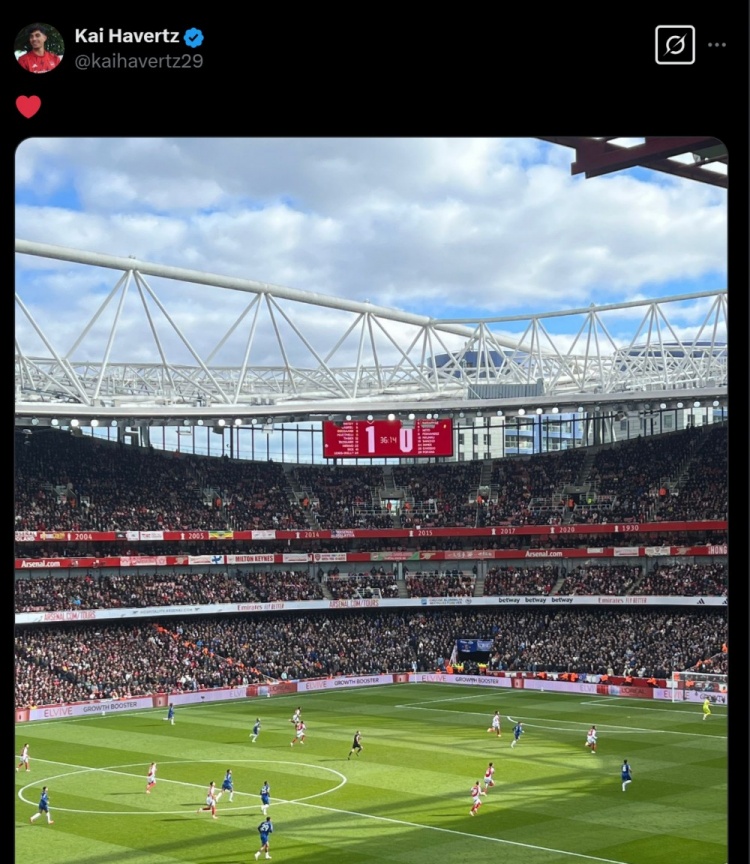 2025-03-17 07:20:56心系球队❤哈弗茨赛后晒比分牌,庆祝阿森纳击败老东家切尔西