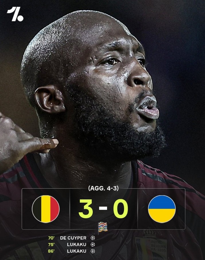 2025-03-24 09:25:29欧国联升级赛次回合比利时3-0击败乌克兰,卢卡库梅开二度