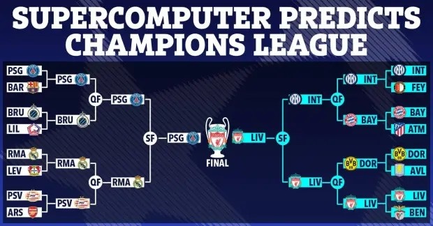 2025-02-21 17:42:13超算预测欧冠:利物浦击败巴黎夺冠,阿森纳、维拉止步16强