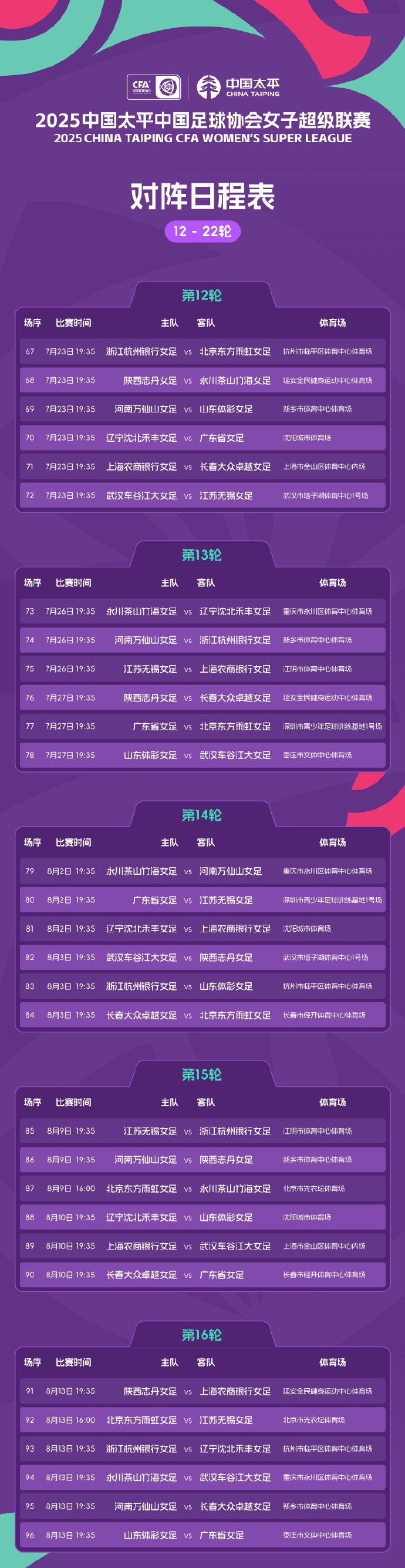 2025-03-05 20:29:392025中国太平中国足球协会女子超级联赛对阵日程表