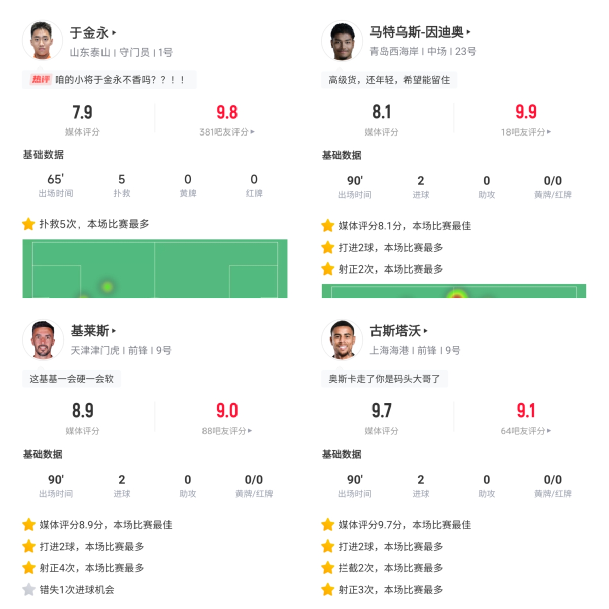 2025-02-24 16:06:52【直播吧】中超首轮最佳球员:于金永险胜,得票率仅多基莱斯1.7%