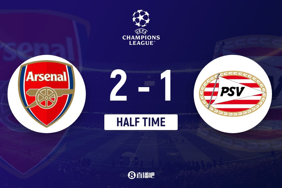 上半场伤停补时1分钟,半场结束,阿森纳暂2-1埃因霍温。