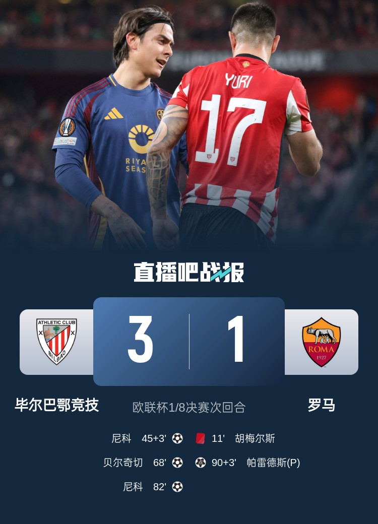 无缘八强!十人罗马1-3总比分3-4遭毕巴逆转 胡梅尔斯11分钟直红